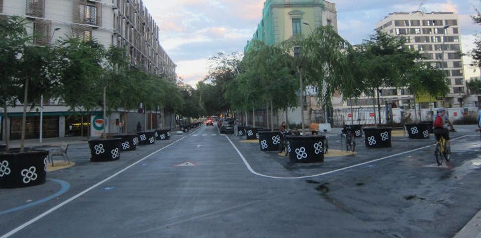 Consider Barcelona's innovative "Superblocks" program, which subtracts by closing roads to through-traffic. Ultimately, the program will close two of every three roads in the city's grid system. Superblocks reduce the vehicle air pollution that make Barcelona residents (and probably you) more likely to die early from vehicle air pollution than from a car crash.