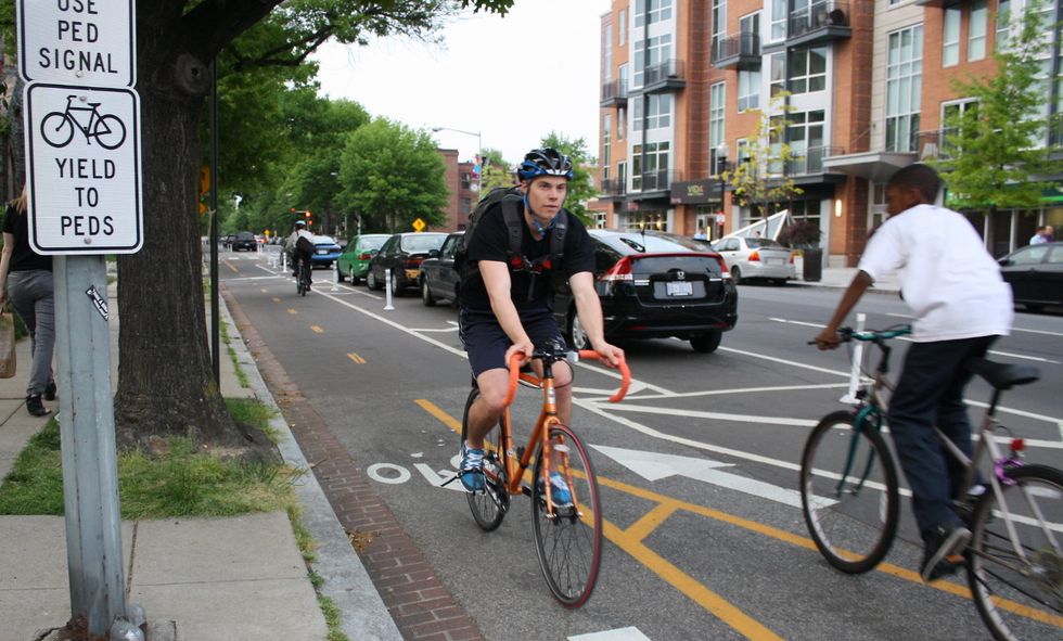Bicycle lanes in downtown Washington DC. (Credit: Elvert Barnes/flickr)