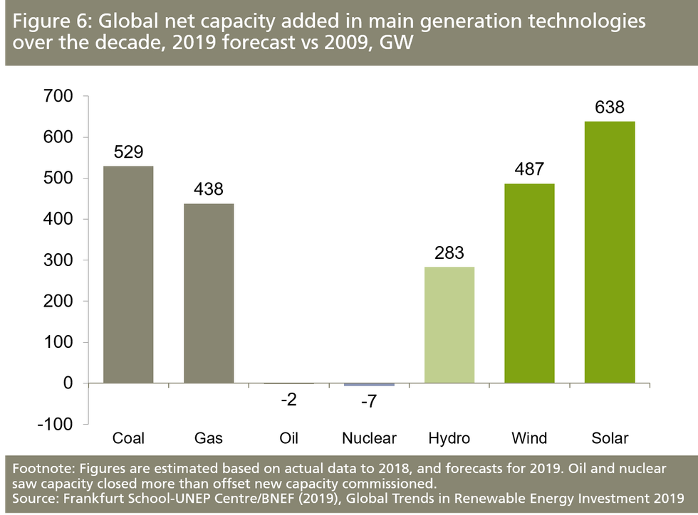 The 1.2 terawatts of new renewable energy capacity added over the past decade is "more than the entire electricity generating fleet of the U.S. today," the authors wrote.