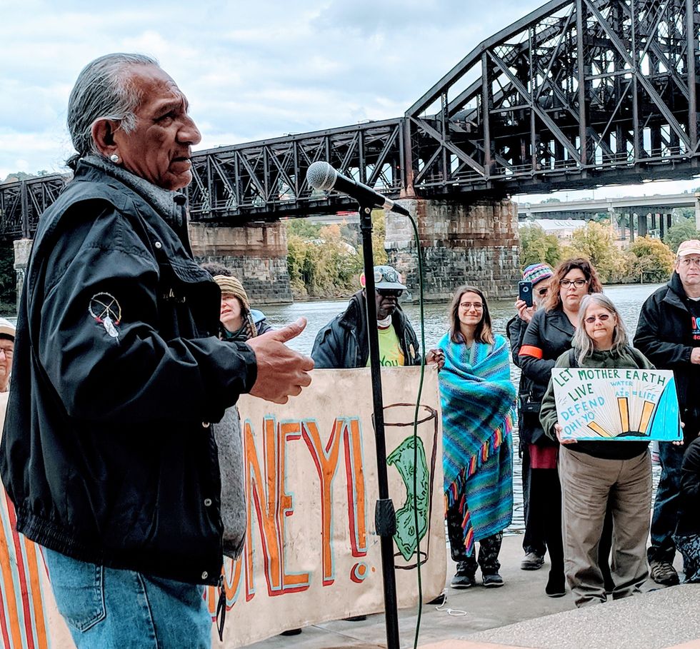 "This is our ancestral territory," Degawenodas, a faithkeeper of the Wolf Clan of the Seneca Nation who will help lead the water ceremony, told EHN. "We were forced off this land, but we're lucky to remain in the vicinity of the Allegheny River. We believe water is the lifeblood of all creation."