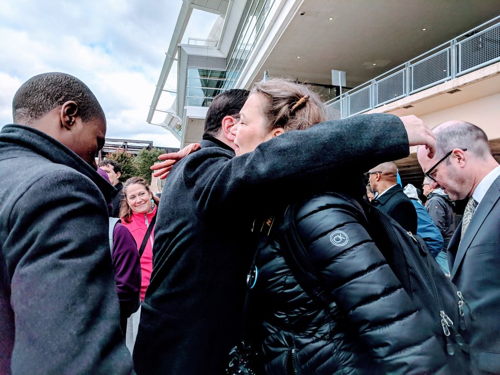 Still, following his remarks, Peduto was warmly embraced by several members of the crowd.