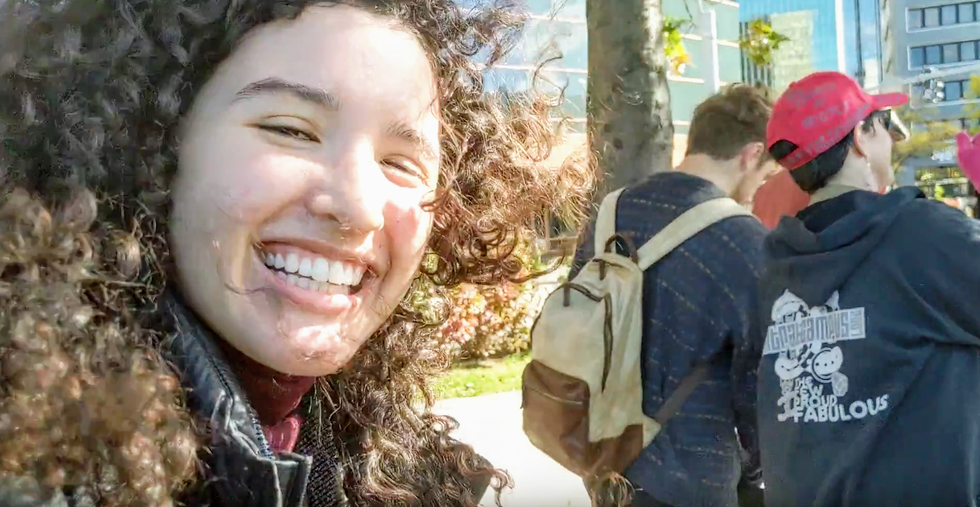Leandra Mira, the 17-year-old leading Pittsburgh's youth climate movement by striking on the steps of Pittsburgh's City County Building every Friday, also attended the protest.